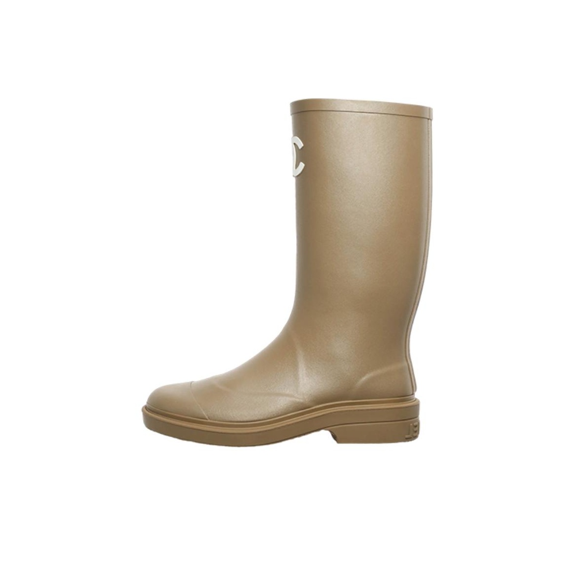 CHANEL 25S Rubber Fashion Pull-On High Boots Women's Dark Beige