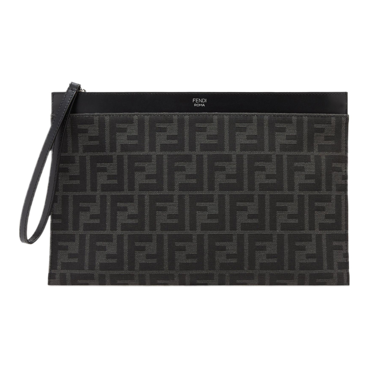 FENDI Cotton With Calfskin Clutch Medium Size Men's Black 7N0134-AFBV-F1IKJ size 30*1*20.5cm