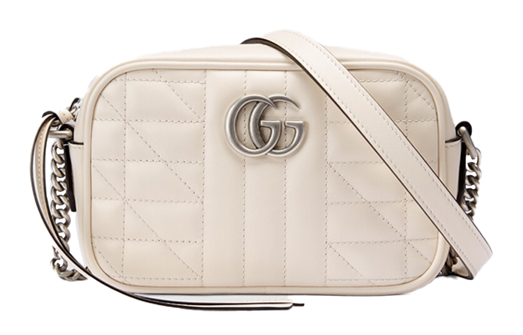 GUCCI GG Marmont Leather Camera Bag, Crossbody Bag, Shoulder Bag Women's White 634936-UM8BN-9022 size 18*6*12 cm