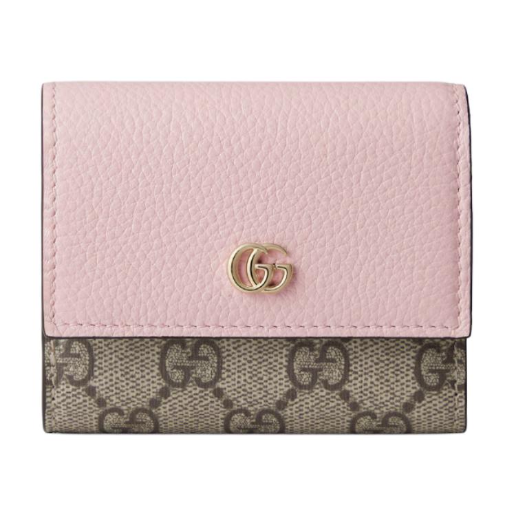 GUCCI GG Marmont Leather Wallet Mini Women's Pink & Beige & Brown 837957-AAFXM-5743 size 10*1.5*8cm