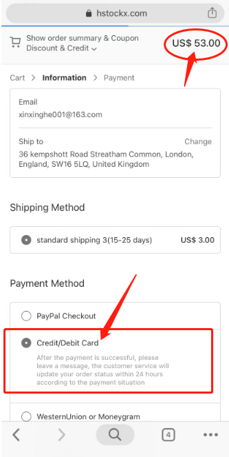 6). We will update your order information on hstockx.com within 24 hours after payment.