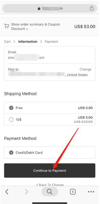 2) Select Credit/Debit Card for payment in the shopping cart