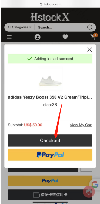 1), log in/register an account, and select the product to be purchased on the hstockx.com website