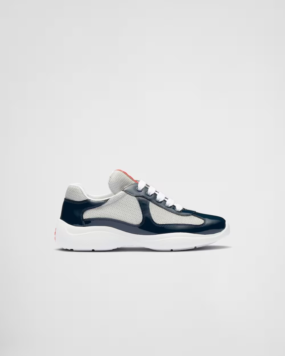Prada America's Cup Patent leather round toe lace-up low-top lifestyle shoes for men navy blue