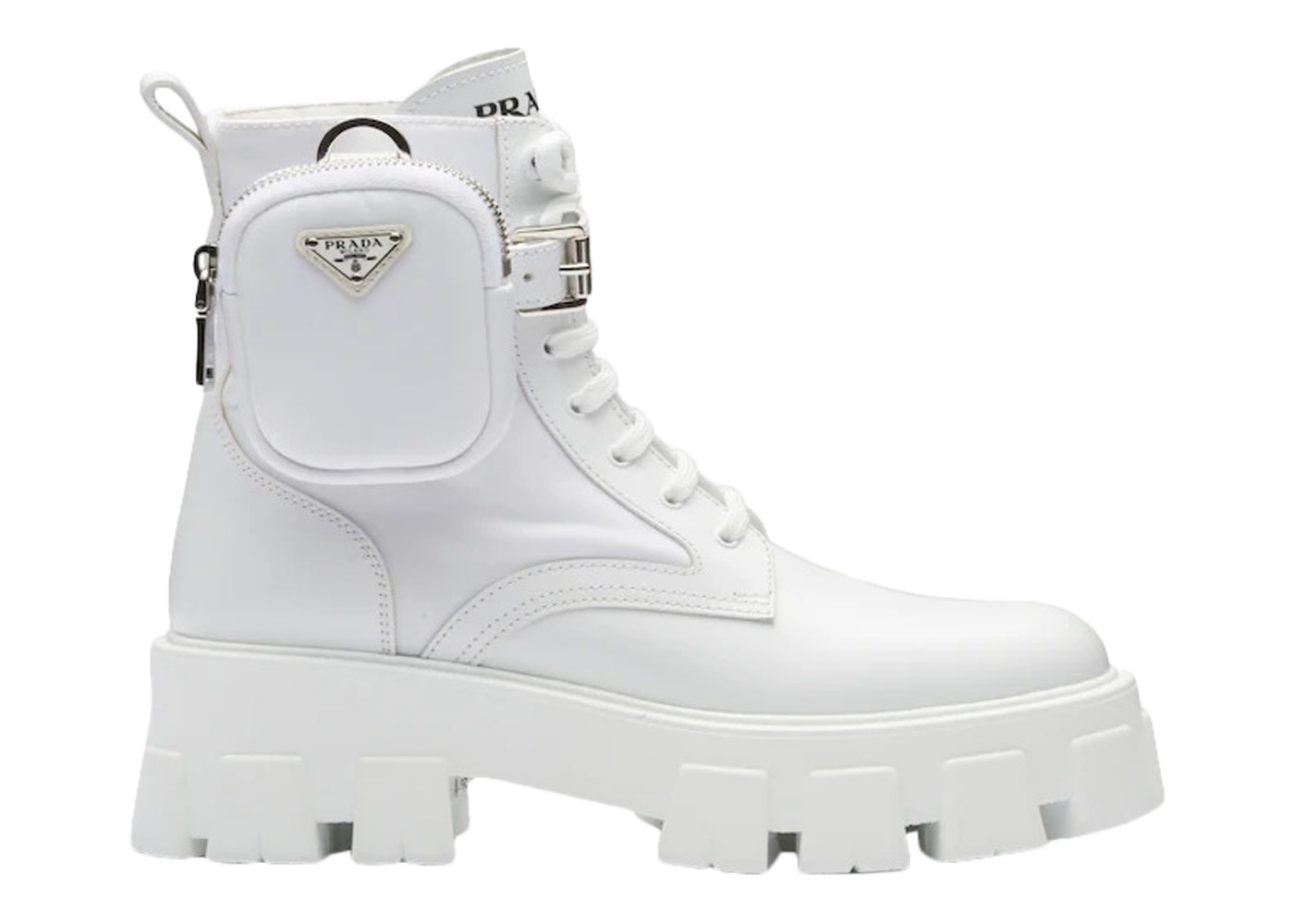 Prada Monolith 55mm Pouch Ankle Boots White Leather