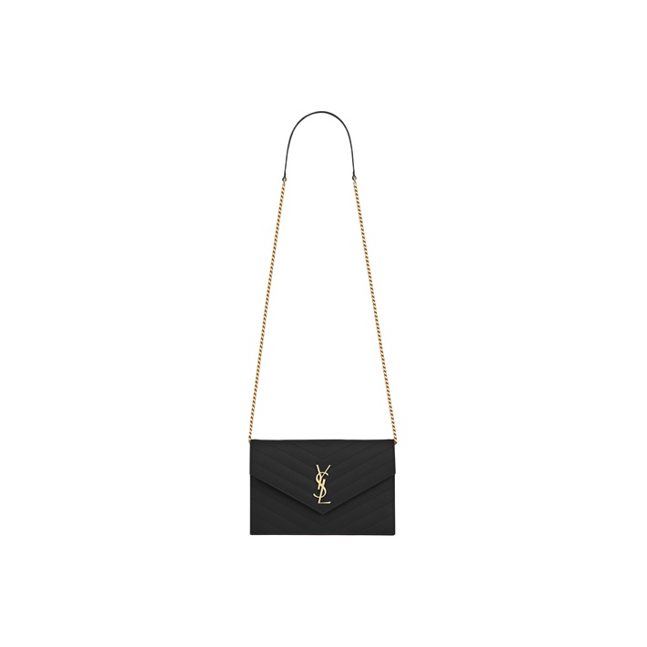 SAINT LAURENT ENVELOPE Quilted Grain Embossed Leather Envelope Bag Wallets Shoulder Bag Crossbody Bag Women's Black 393953-BOW01-1000 size L19*W3.5*H12.5cm