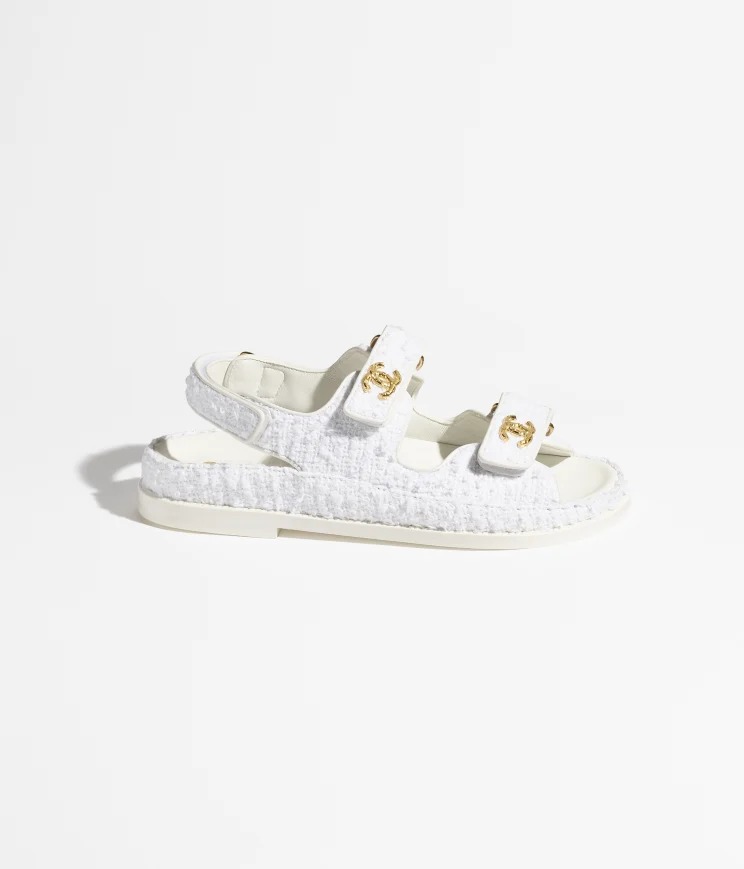 Chanel Tweed Sandal White Cotton