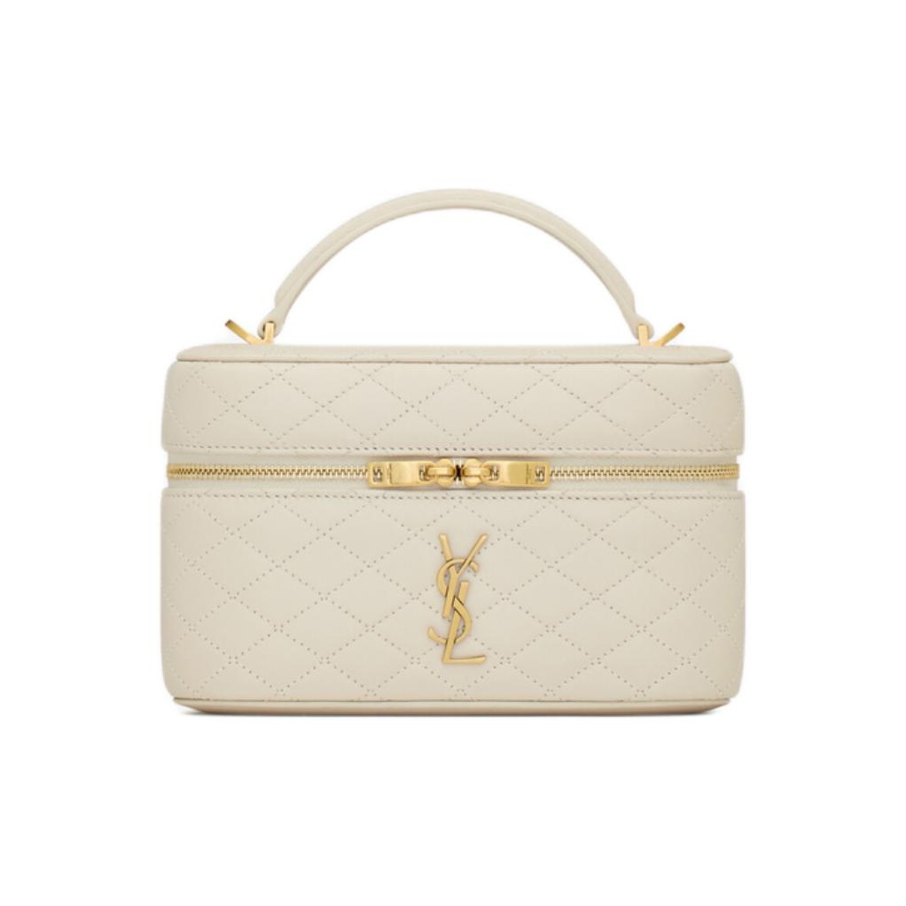 SAINT LAURENT GABY Bronze Hardware Zipper Closure Lambskin Cosmetic Bag Handbag Shoulder Bag Women's Vintage White 766731-1EL07-9207 size 18*6.5*11cm