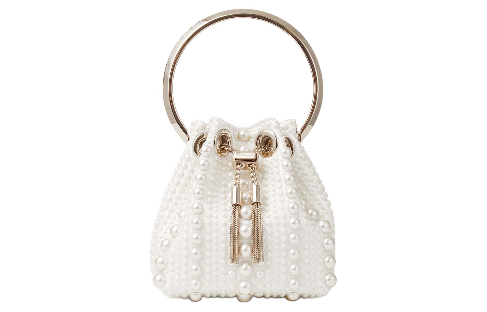 Jimmy Choo Satin Fabric Handbag Mini Women's Ivory