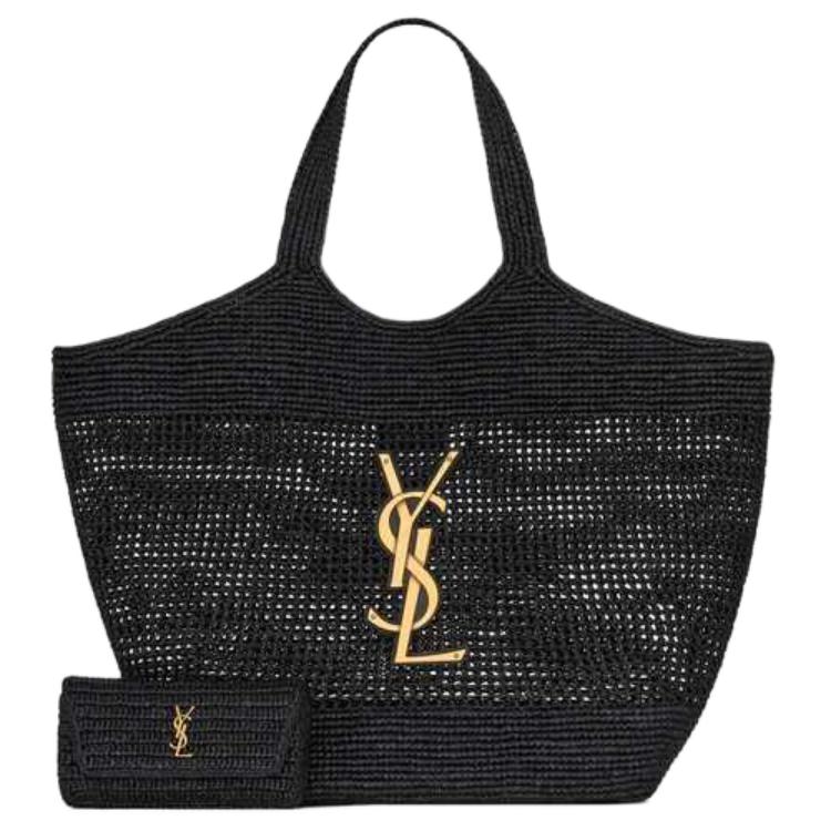 SAINT LAURENT Raffia Basket Bag, Tote Bag, Shopping Bag, Handbag Large Women's Black 772191-GAAFM-1000 size 58*36 cm