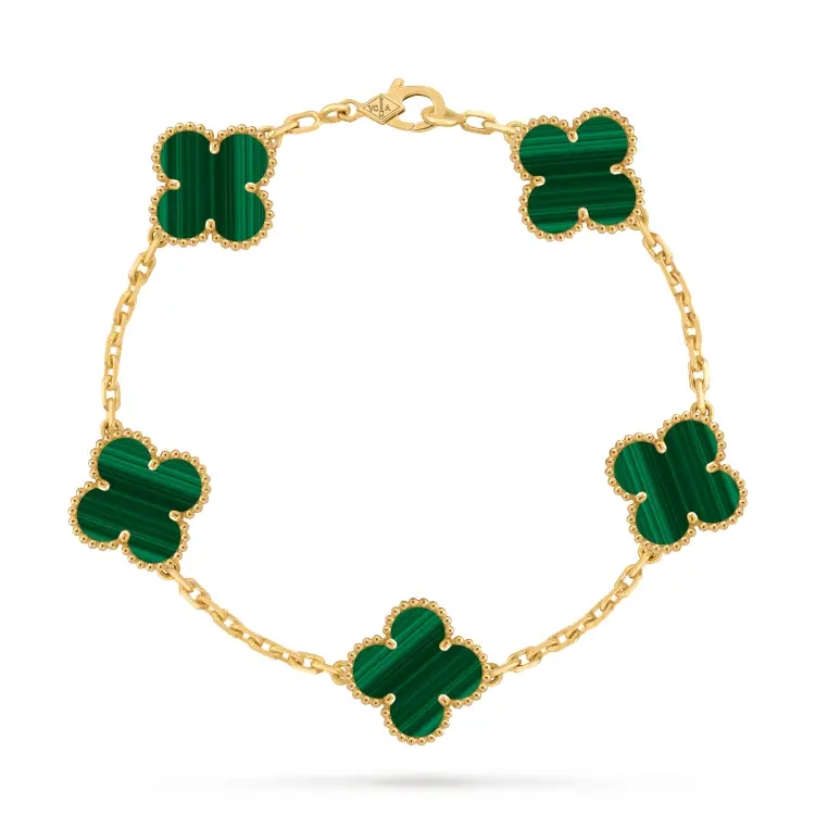 Van Cleef & Arpels Pre Owned 2010s 18K Yellow Gold Alhambra Malachite Bracelet