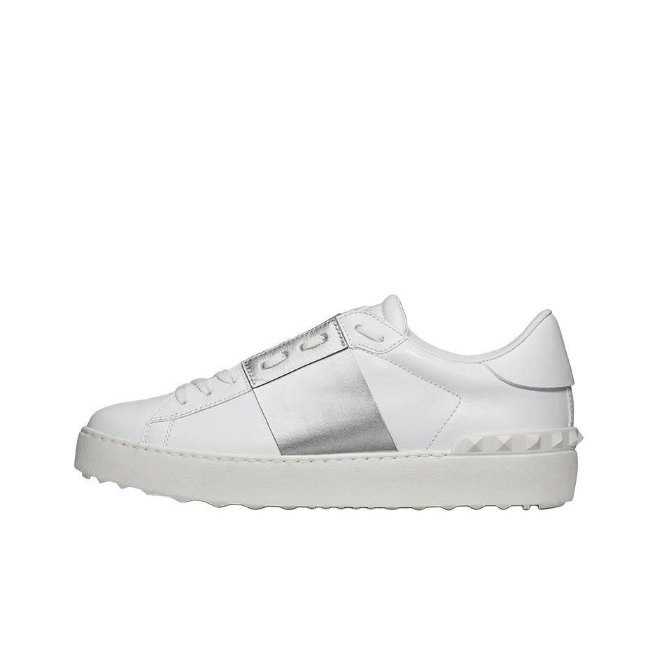Valentino Open leather metallic stripe sneakers low-top sneakers white and silver