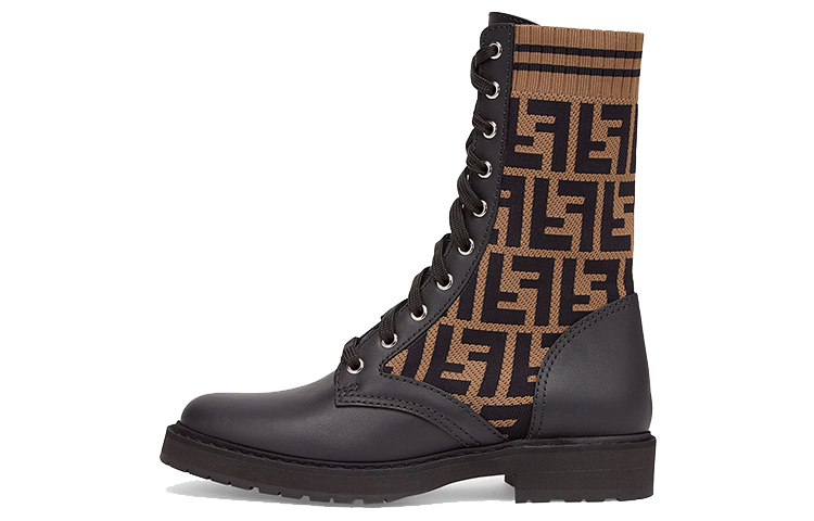 FENDI Women's FF Rockoko Biker Boot 'Black Tabacco'