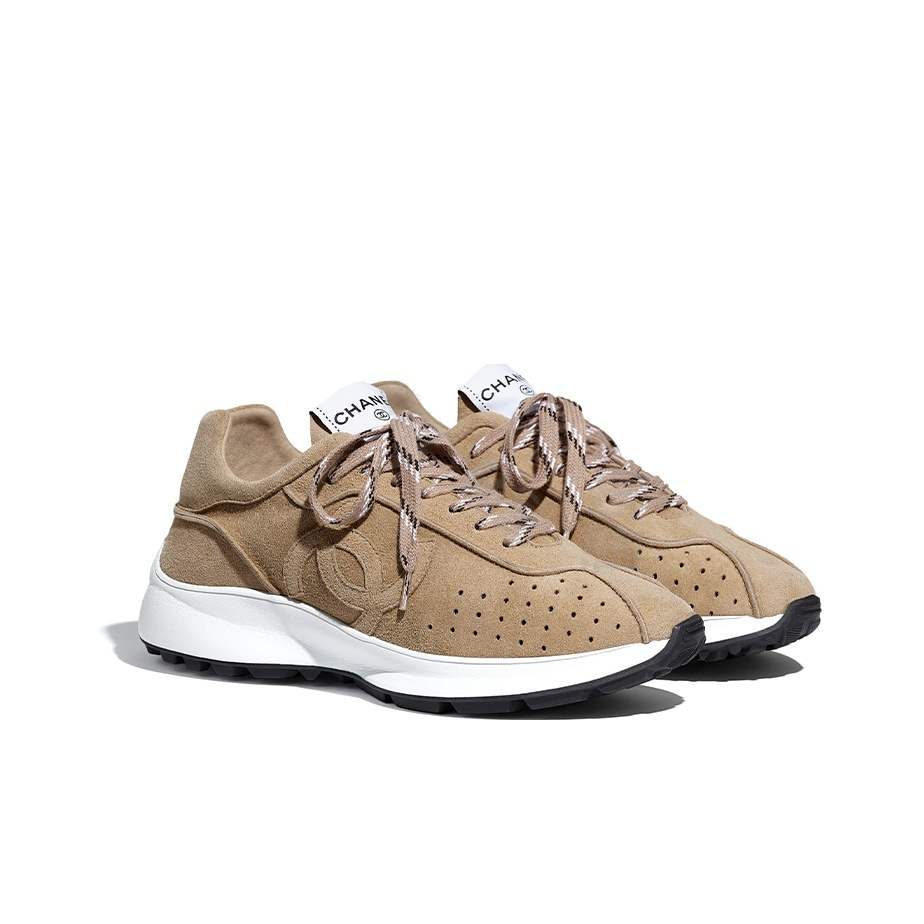 CHANEL leather suede sheepskin lace-up flat bottom shock absorption non-slip wear-resistant breathable low-top life casual shoes women's deep